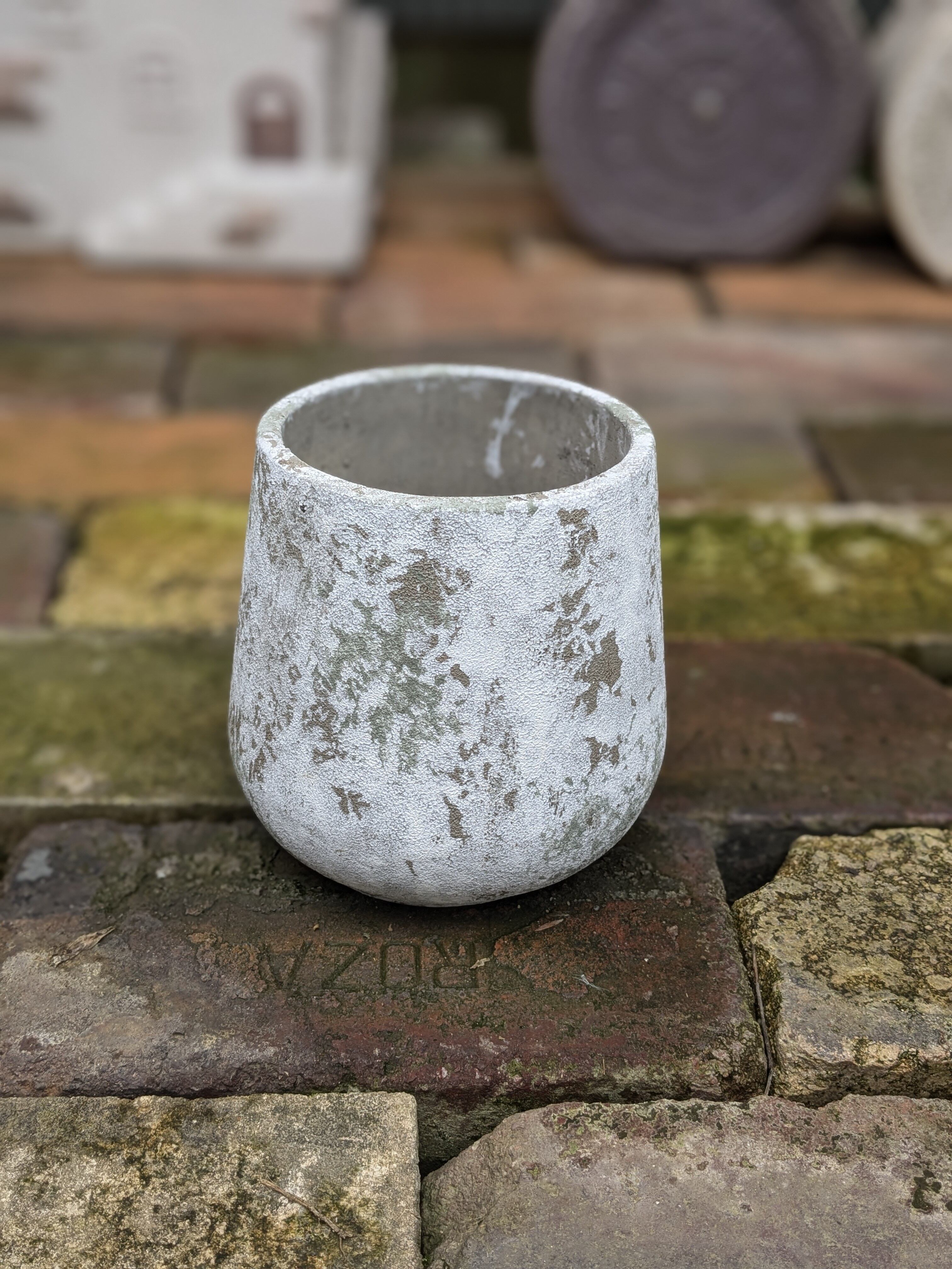 まるで苔が生えたようなデザインのセメントポットです。