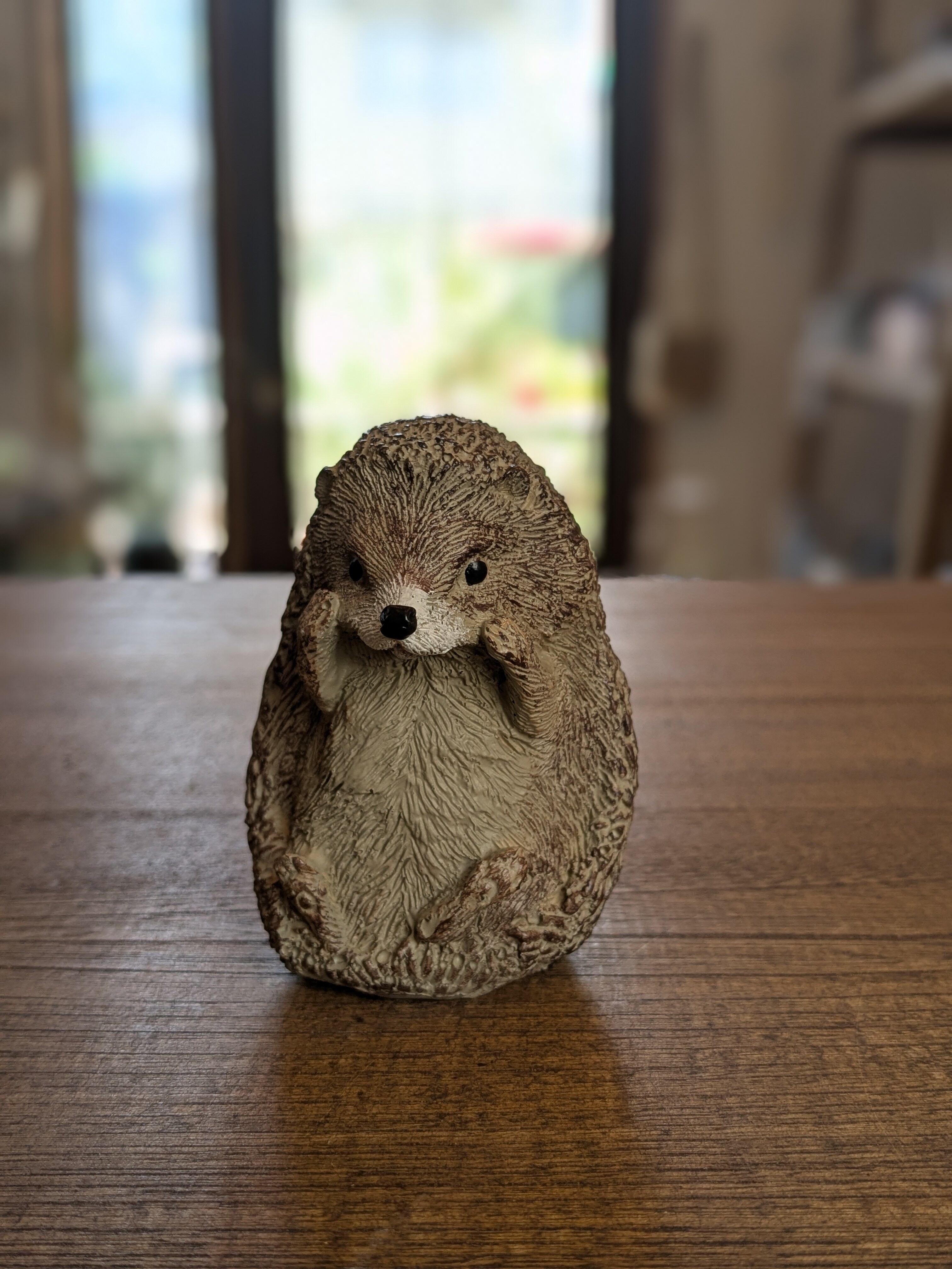 森から出てきたような存在感がある可愛らしいハリネズミです。
