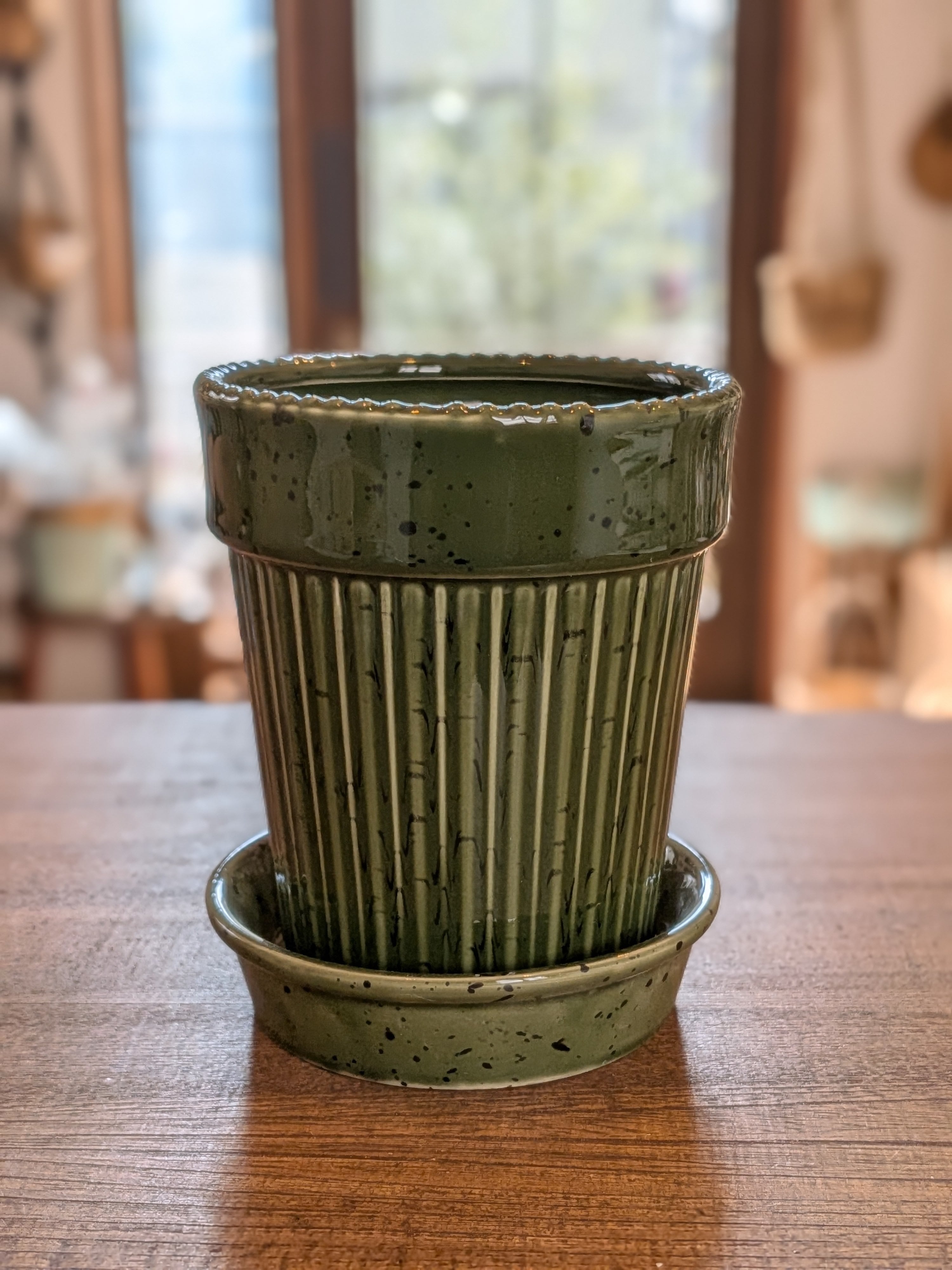 艶のある仕上げと縦ラインが入ったシンプルな植木鉢