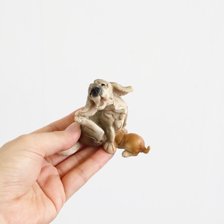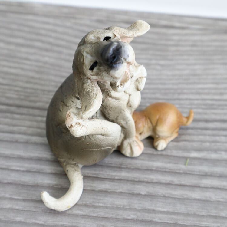 手のひらサイズのとてもかわいい親子の犬の置物(オブジェ)です♪