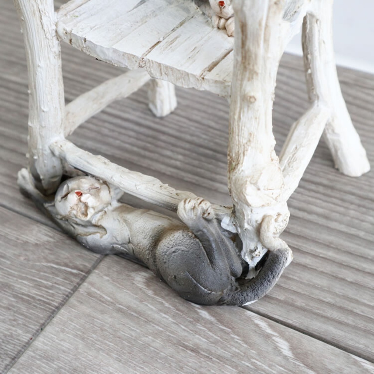 椅子の上と下で子猫がじゃれ合っているとてもかわいい置物(オブジェ)です♪