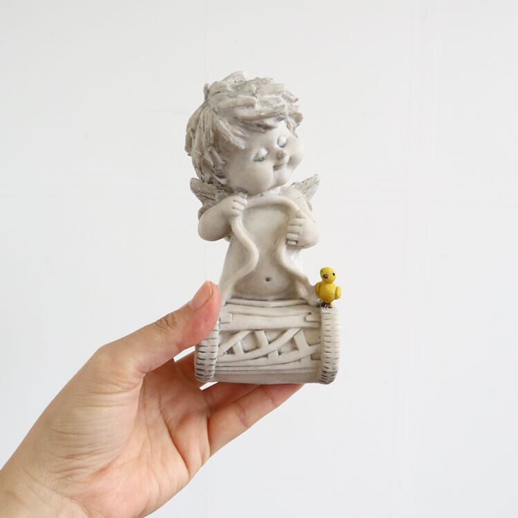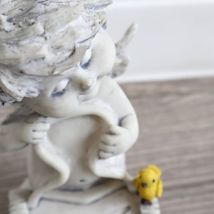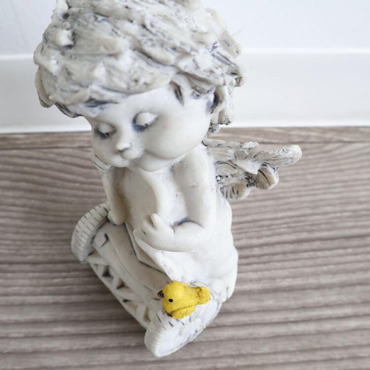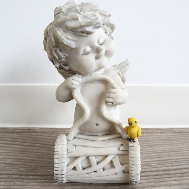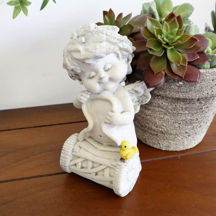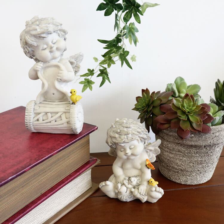 顔がとても個性的なエンジェルの置物(オブジェ)です。