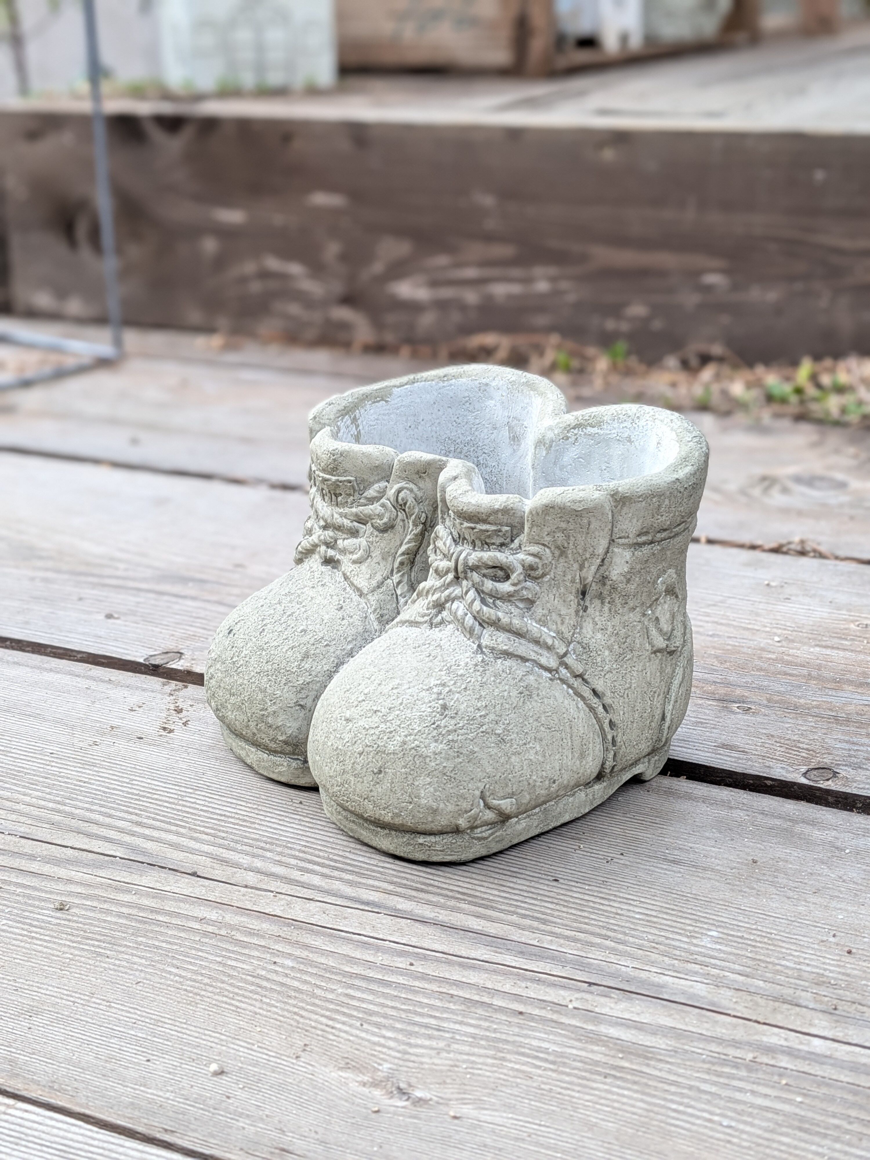ヴィンテージブーツCツインは、独特の風合いとクラシカルなデザインが魅力的なアイテムです。内径W125×D60のスペースは、多肉植物やお気に入りの小物をおしゃれに飾るのにぴったり。サイズW145×D130×H115のしっかりした作りは、どんなインテリアにもマッチし、個性的な空間を引き立てます。セメント素材で作られているため、耐久性があり、屋内外を問わずお使いいただけます。